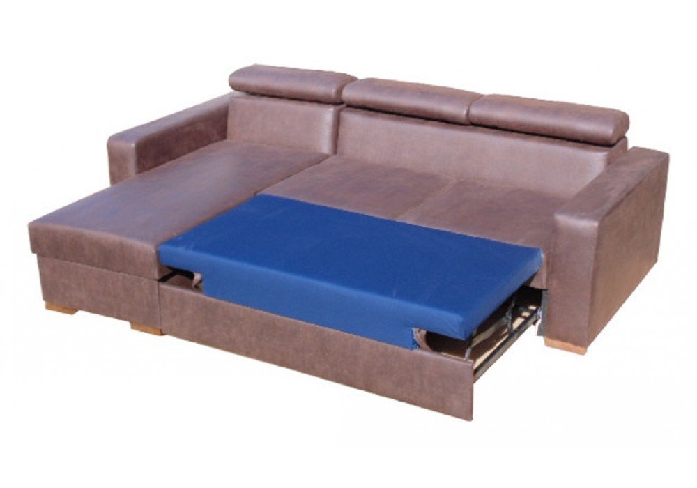 Narożnik posiada funkcje spania oraz duży pojemnik na pościel.